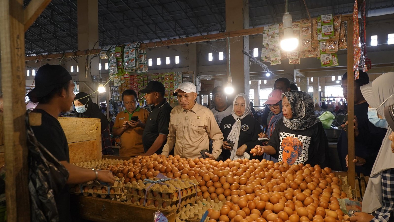 Kendali – H-1 Ramadhan, Pemerintah Kota Tidore Kepulauan melalui Tim Pengendalian Inflasi Daerah (TPID) melakukan sidak pasar untuk memastikan keterjangkauan harga Bahan Pokok (Bapok) agar tetap stabil memasuki bulan suci Ramadhan 1446 di Pasar Gosalaha, Jumat (28/2/2025).