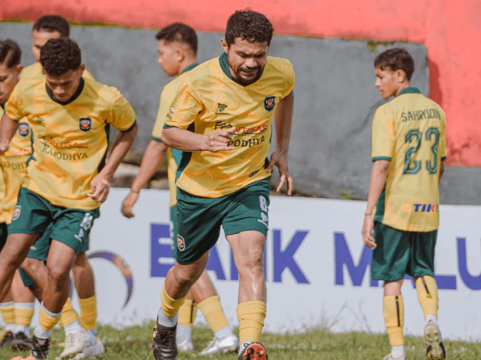 Para pemain TMPR melakukan pemanasan jelang laga kontra Poram Mareku di ajang GOT 2025. Kemenangan dramatis lewat adu penalti membawa TMPR melaju ke semifinal. (Foto: Dok. TMPR)