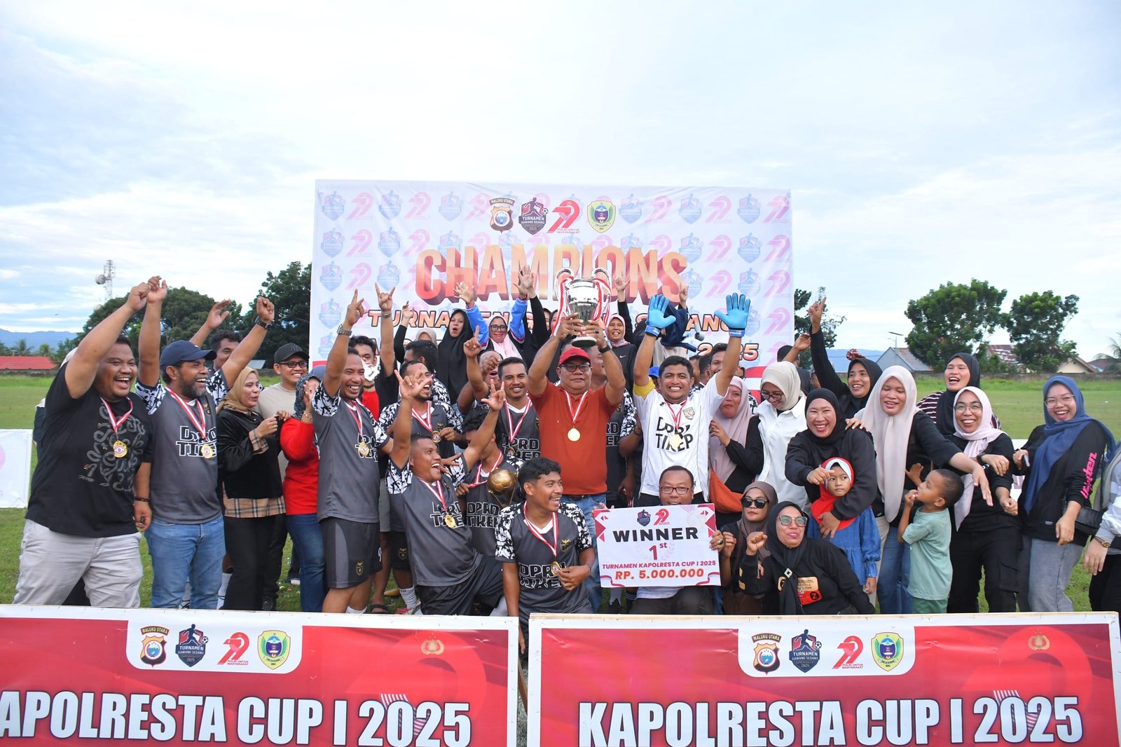 Kendali- Sekretariat DPRD Kota Tidore Kepulauan berhasil keluar sebagai juara pada Turnamen Gawang Sedang Kapolresta Tidore Cup I Tahun 2025 dalam rangka Hari Ulang Tahun (HUT) Bhayangkara ke-79 Tahun 2025, setelah mengalahkan tim SPN Polda Malut dengan skor akhir 2-0.