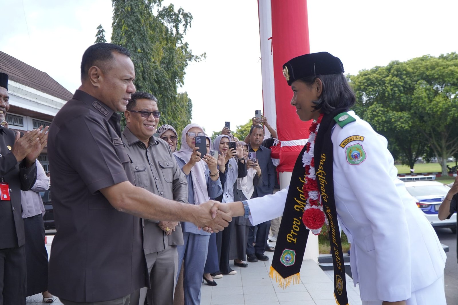 kendali – Membawa nama Kota Tidore Kepulauan di Kancah Nasional, Beatrix Missy salah satu Anggota Paskibraka Tingkat Nasional Tahun 2025 asal Kota Tidore Kepulauan disambut dengan bangga oleh Wali Kota Tidore Kepulauan Muhammad Sinen di Kantor Wali Kota Tidore Kepulauan, Jumat (22/8/2025).