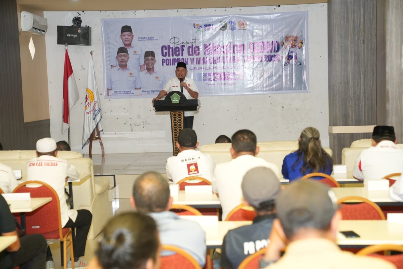 kendali – Wakil Gubernur Maluku Utara, Sarbin Sehe resmi membuka Chef de Mission (CdM) Meeting Pekan Olahraga Provinsi Maluku Utara (Porprov) ke-V tahun 2026 di Asrama Haji, Sabtu (28/3/26)