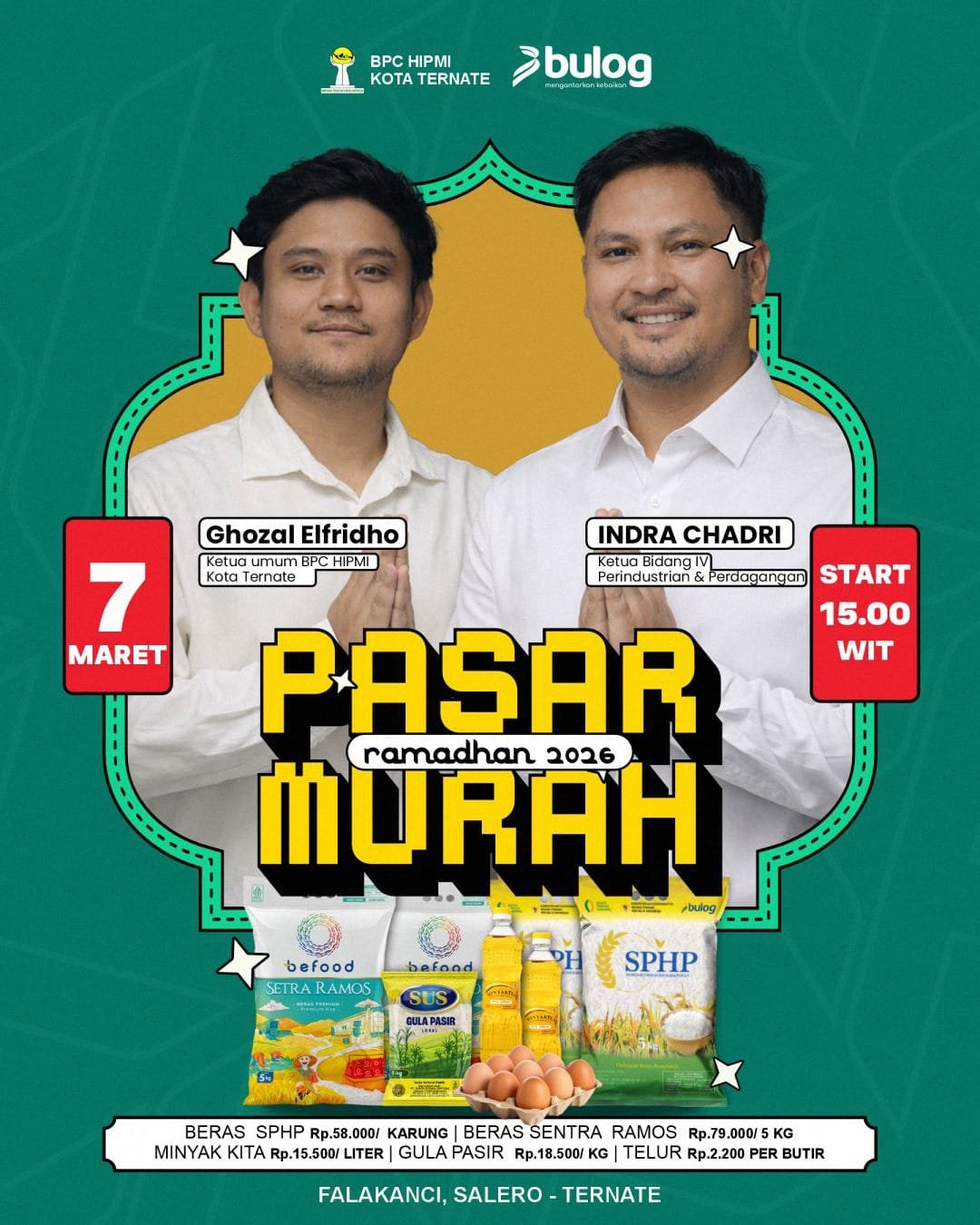 kendali – Badan Pengurus Cabang (BPC) Himpunan Pengusaha Muda Indonesia (HIPMI) Kota Ternate berkolaborasi dengan Perum BULOG Ternate menggelar Pasar Murah Ramadhan 2026.