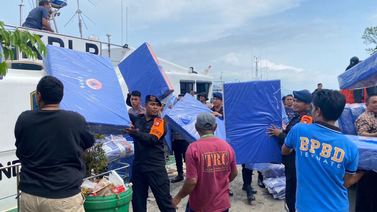 Tim gabungan Kamis (2/4/2026) yang terdiri dari Polri, TNI, serta berbagai instansi pemerintah dan lembaga kemanusiaan resmi diberangkatkan dari Pelabuhan Ahmad Yani Ternate menuju lokasi terdampak menggunakan kapal KNP 358 milik KPLP KSOP Kelas II Ternate.